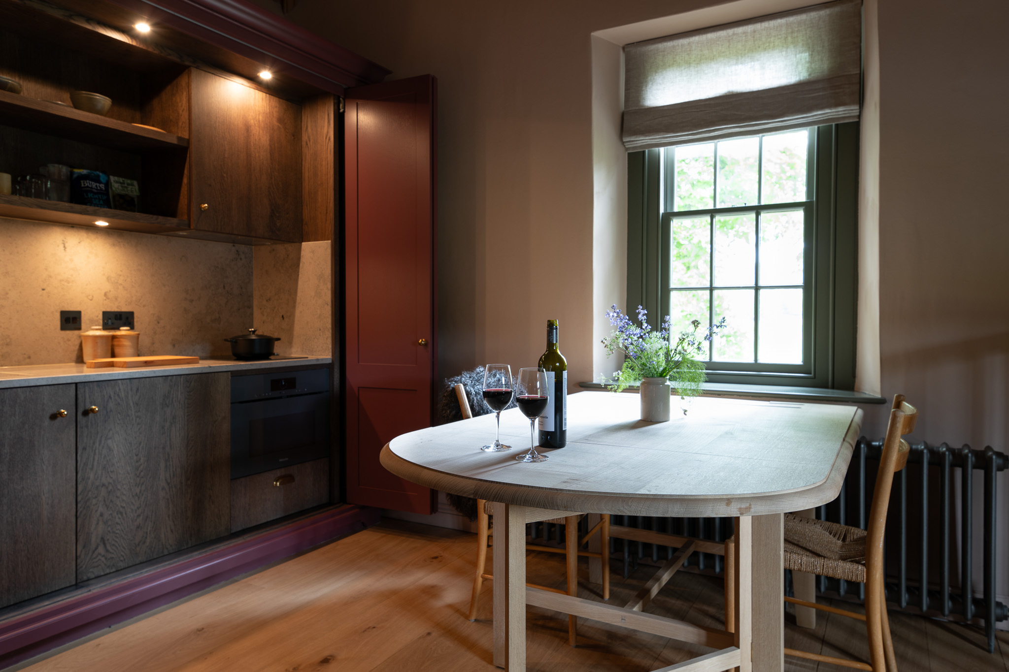 The skies seem wider here. Watch the light change as you sit out on the patio, sipping morning coffee or sampling fresh, local produce prepared on the barbecue. Find creative inspiration on the loch shore and true wilderness in the hills, before returning to your Highland home for long dinners under the open sky, boots left to dry by the front door.